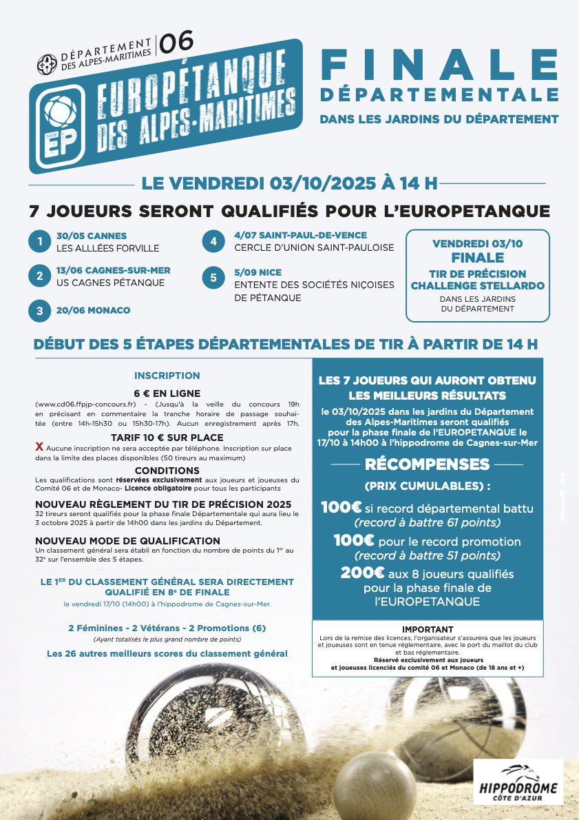 Résultats de la FINALE DEPARTEMENTALE du tir de précision qui s'est déroulé dans les Jardins du Département vendredi 3 octobre